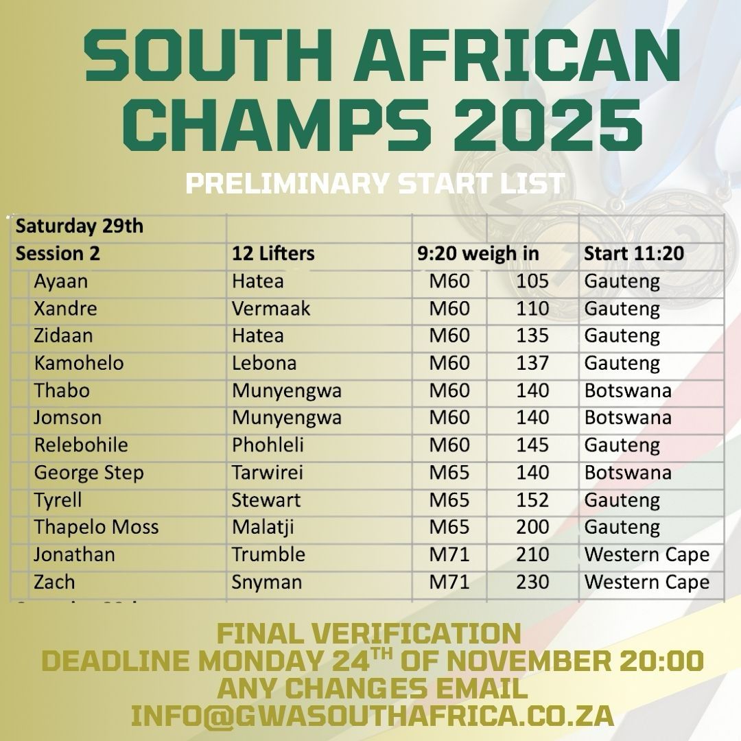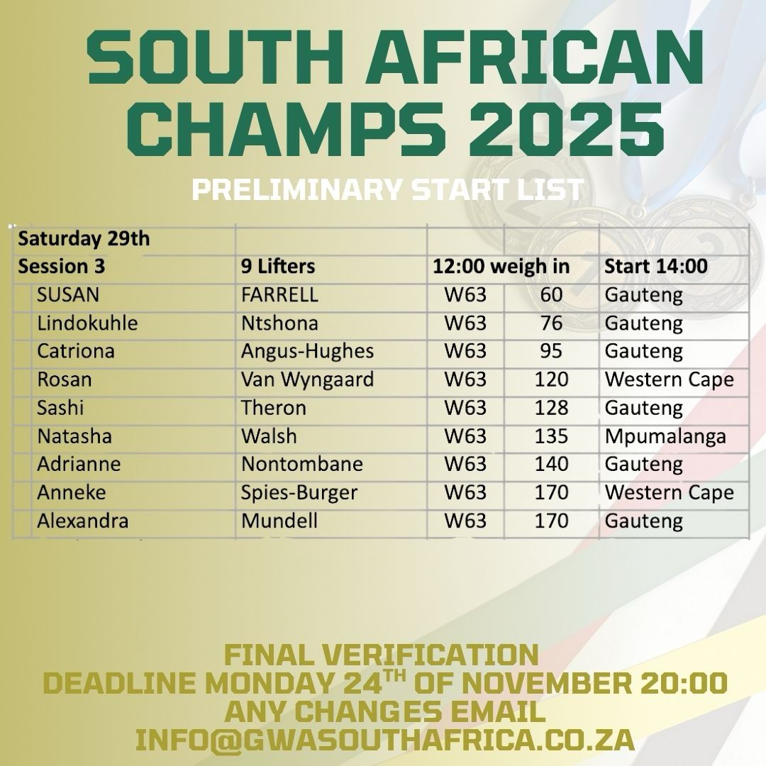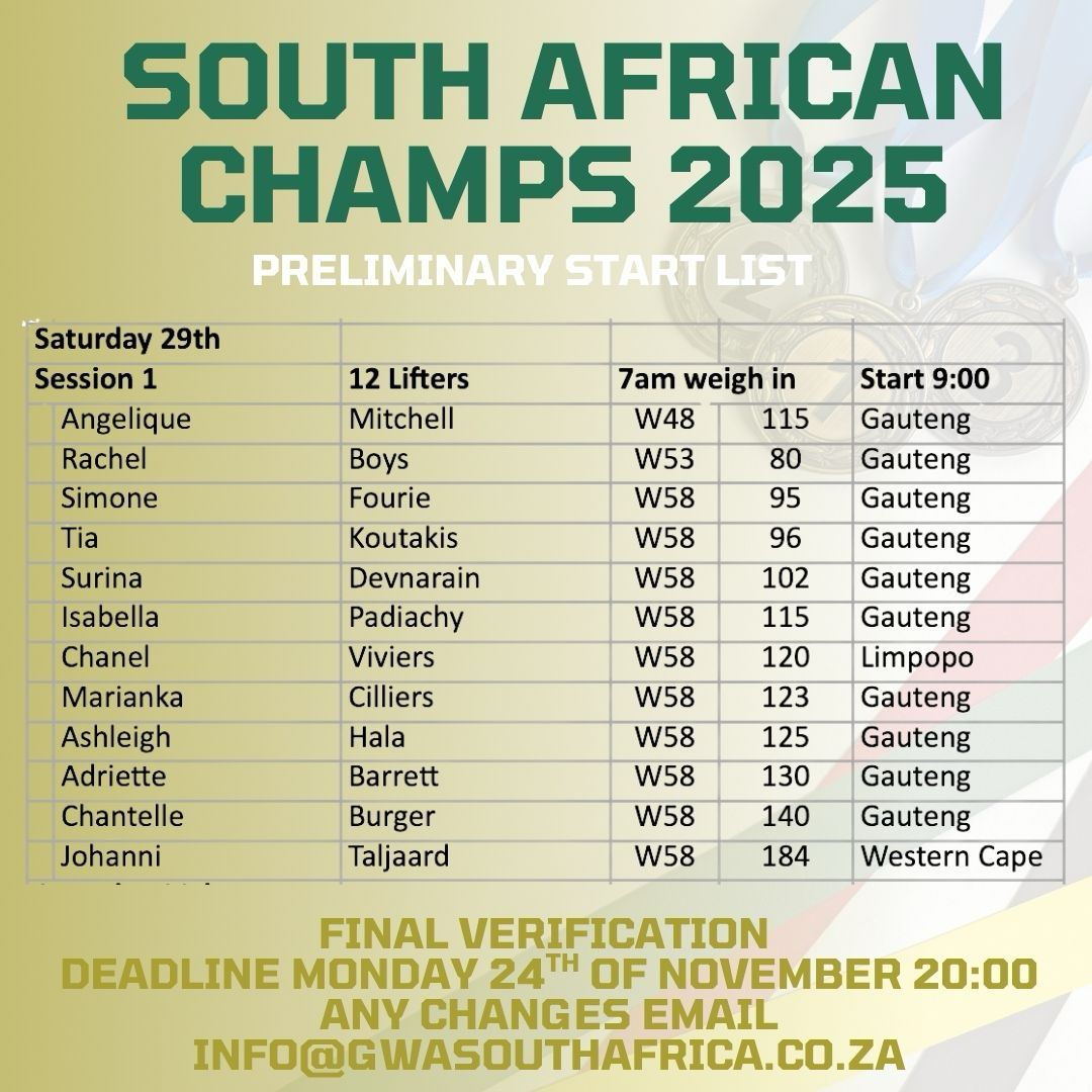 SA Senior Champs 2025: 28-29 September SA Champs Start List SA Senior Champs 2025 Official Results Download Start List