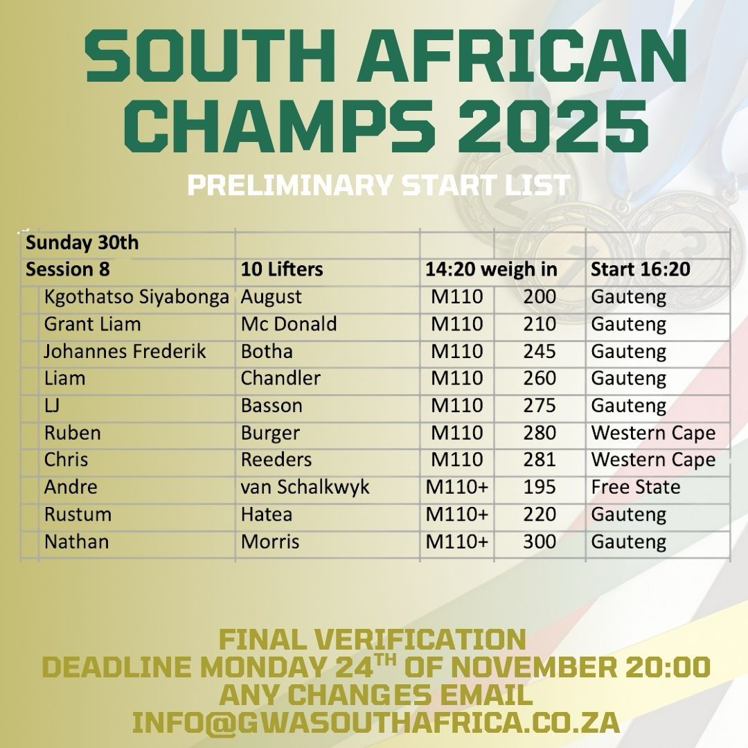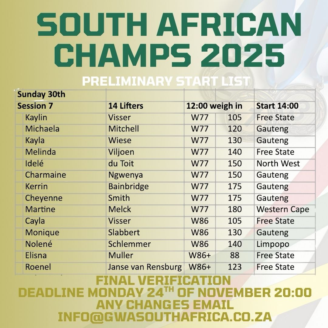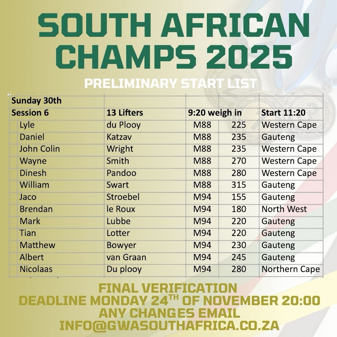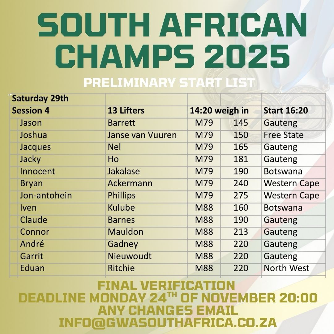 SA Senior Champs 2025: 28-29 September SA Champs Start List SA Senior Champs 2025 Official Results Download Start List